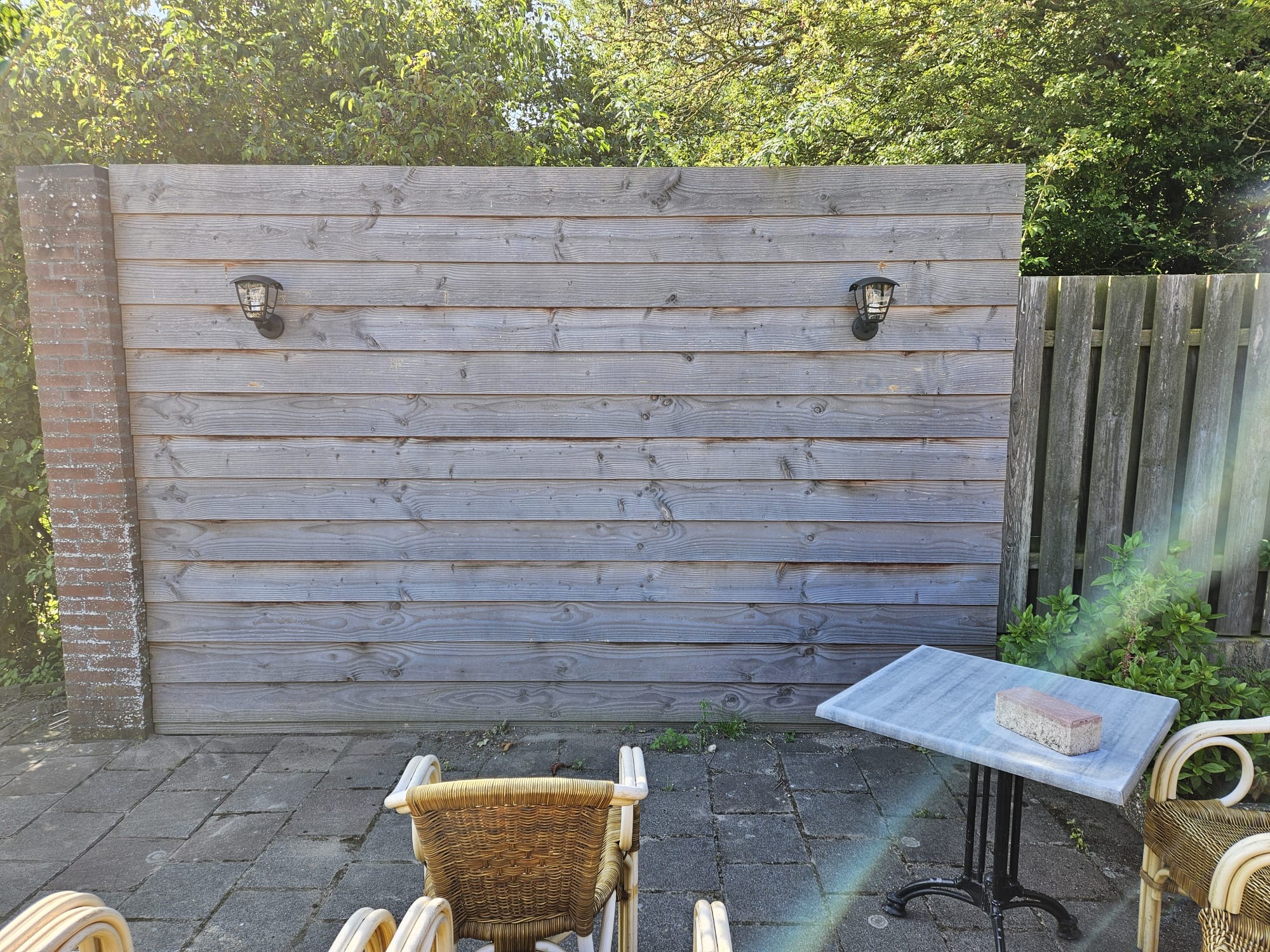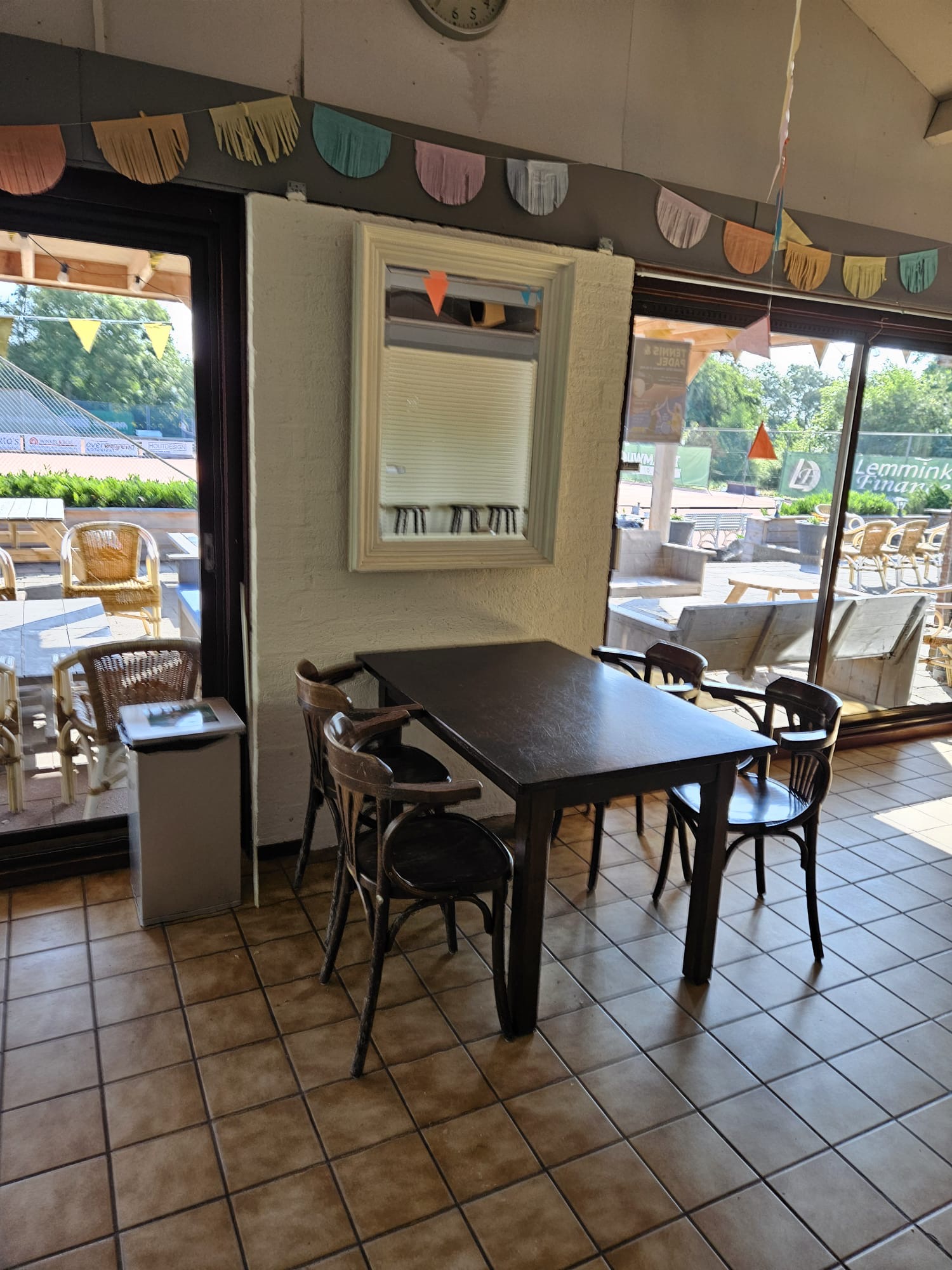 Het muurtje in de kantine heeft een frisse make-over gekregen en nieuwe terraslampen zorgen voor extra sfeer (💡 dank aan Dirk Roele).