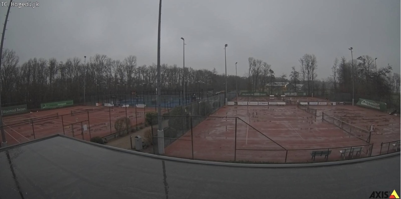 De banen zijn gesloten ivm uitglijgevaar en schade aan banen, rackets en materiaal.