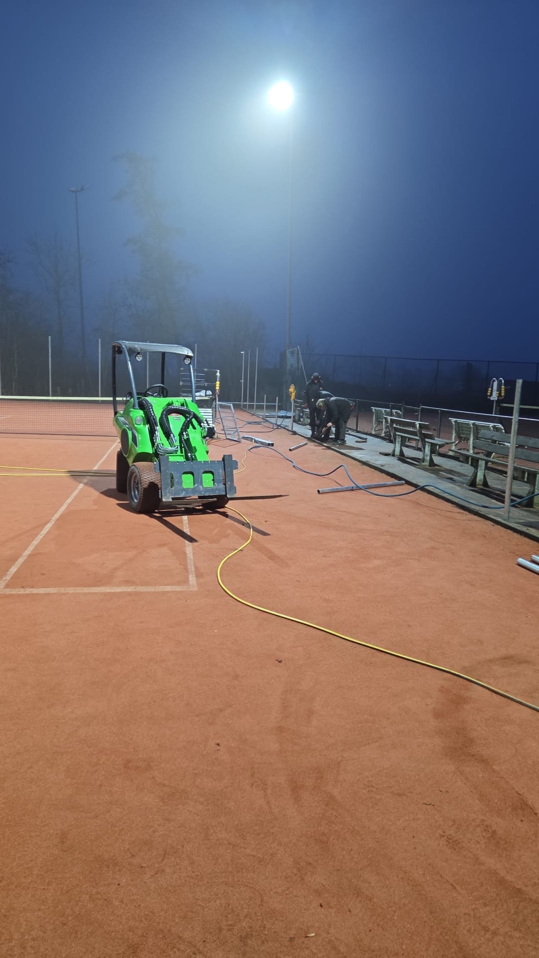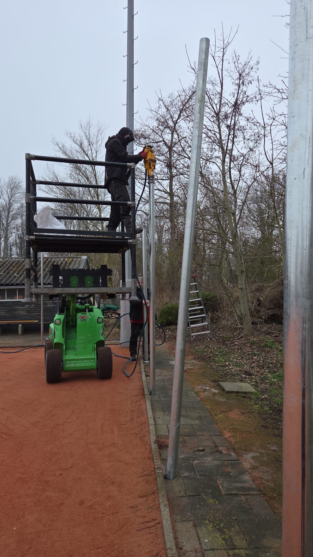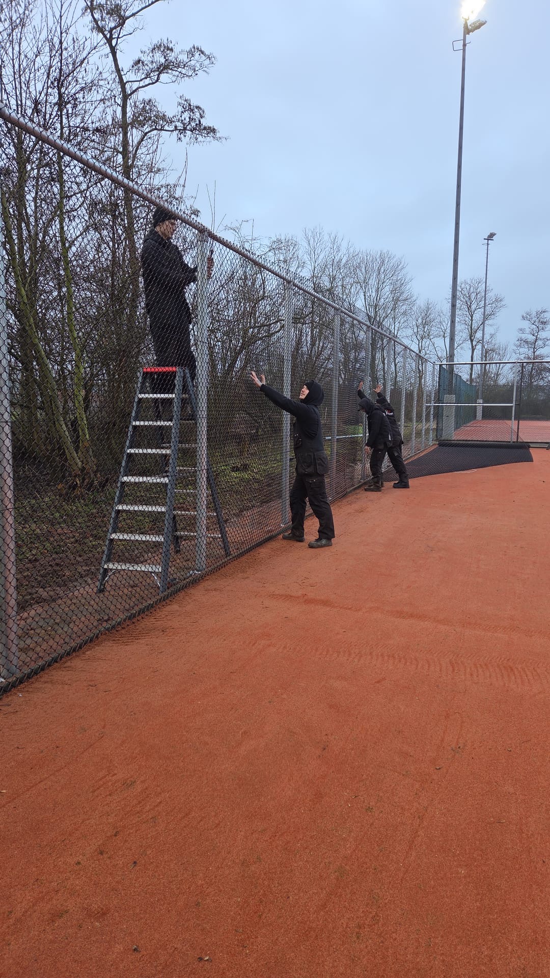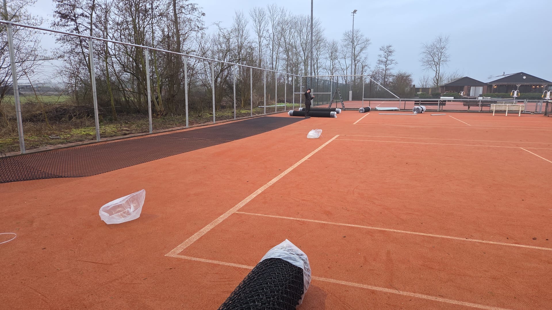 Vanaf dinsdag 10 februari zijn er 2 weken lang maar 4 tennisbanen beschikbaar om te spelen in verband met vervangen van het hekwerk. Klik op de foto"s om de voortgang te volgen.