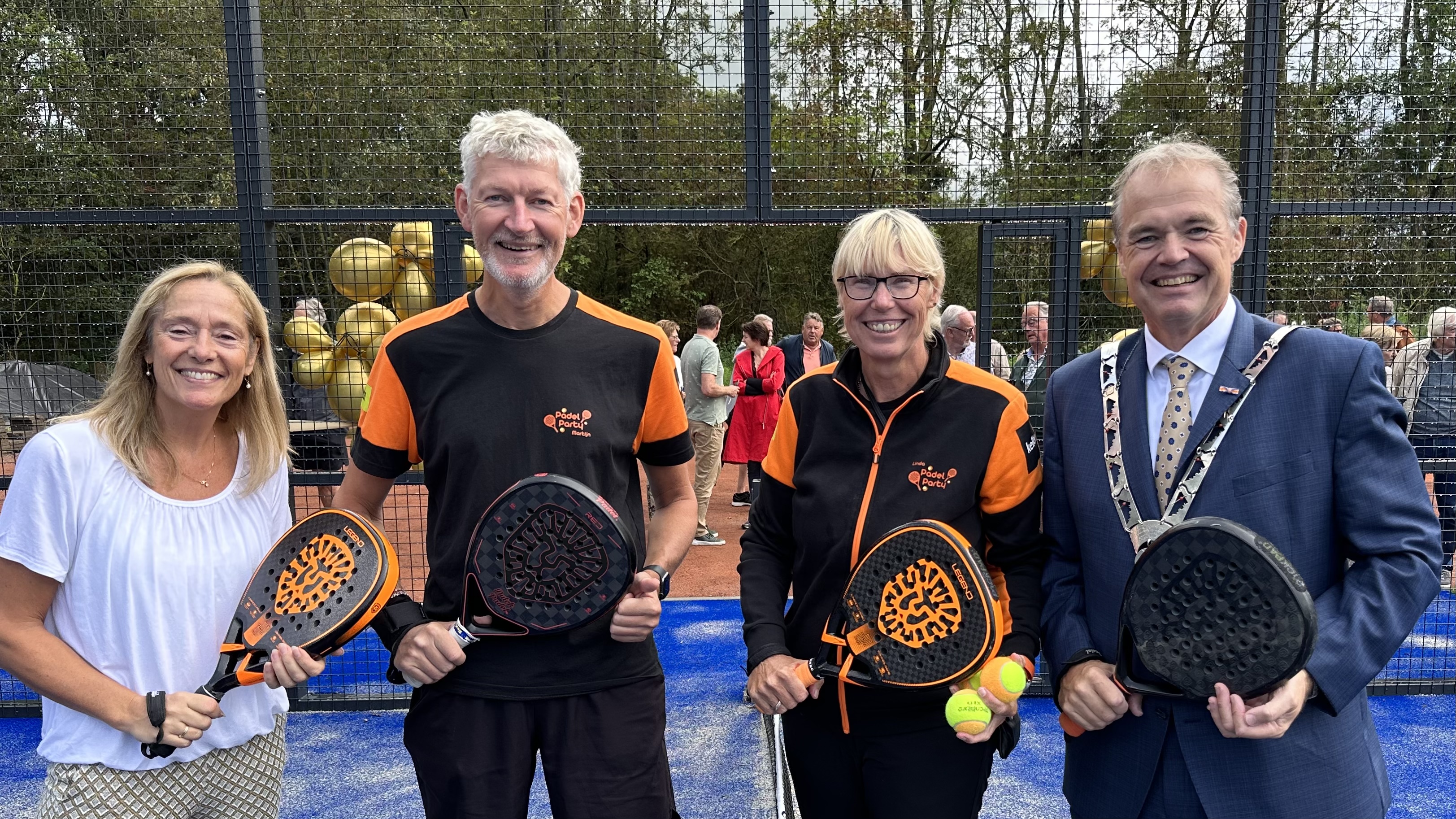 Zowel burgemeester Lars Voskuil als zijn vrouw Priska kon het niet laten de uitdaging aan te nemen van Martijn en Linda van Padel Party om even een kort potje te spelen. Dat ging hen overigens uitstekend af.